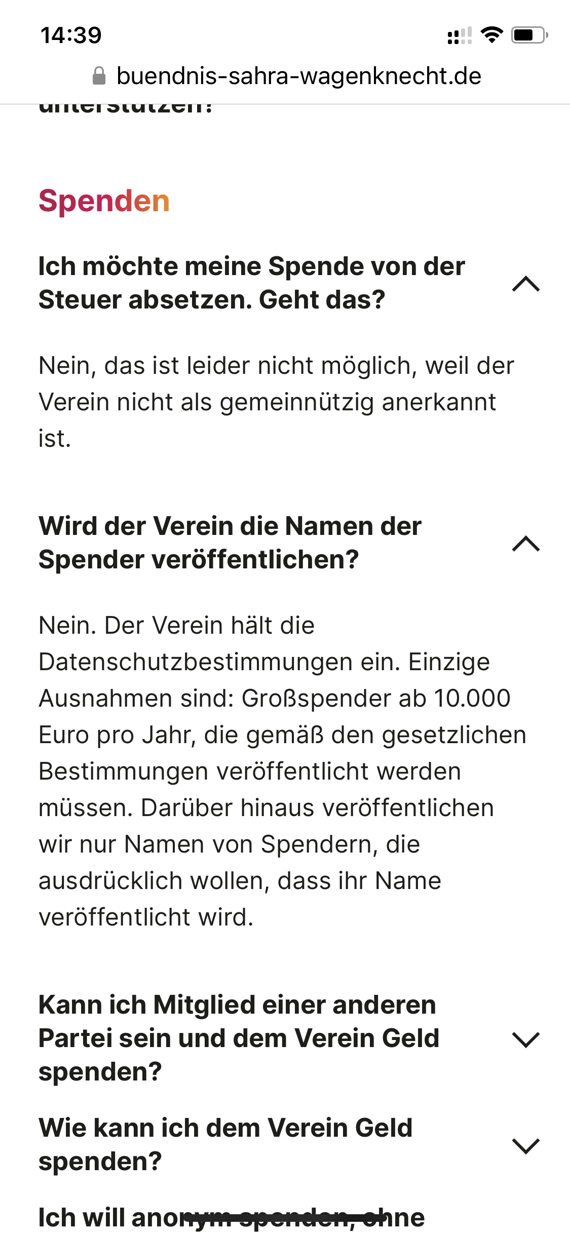 Dieses Vorgehen ist logisch und vielleicht auch eine Lehre aus dem Aufstehen-Verein, den Wagenknecht und Genossinnen gegründet hatten. Denn ein gemeinnütziger Verein darf niemals Geld an eine Partei geben.